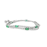 Diamond & Emerald Double wrap Tennis bracelet + Necklace 14k White Gold