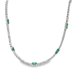 > Diamond & Emerald Double wrap Tennis bracelet + Necklace 14k White Gold